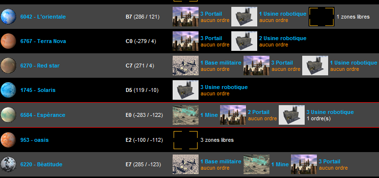 Alors cela se trouve dans la vue des bâtiments : pour chaque planète et pour chaque bâtiment, il est désormais indiqué si des ordres sont passés ou pas. Cela vous permet de repérer assez vite les bâtiments pour lesquels vous n'avez passé aucun ordre.